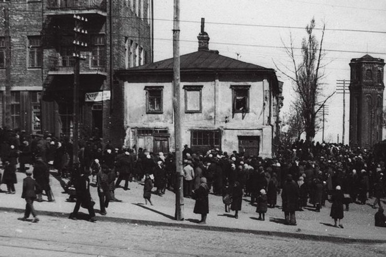 Черги за хлібом до магазину “Торгсин”, Харків, 1933 рік. Фото зробив інженер Вінербергер. Музей Голодомору