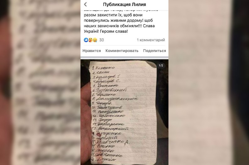 "Спочатку з’явився аркуш, маленький, скривавлений, з прізвищами. Це самі хлопці написали й закинули його в інтернет, щоб ми зрозуміли, що вони — живі. Мені, мабуть, людей 20 переслали цей допис в інтернеті", — каже Юлія.