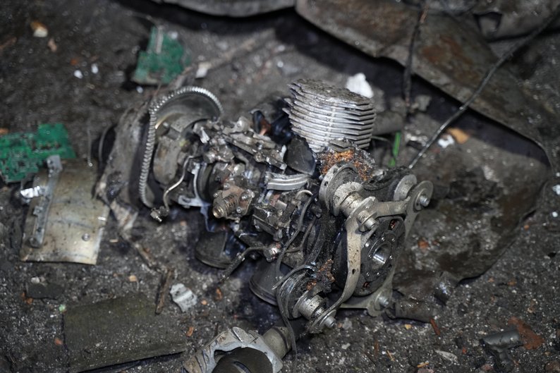 Уламки російського безпілотника “Герань-2”, який впав на території Шевченківського району Харкова, 5 листопада 2024 року. Суспільне Харків/Євген Гертнер