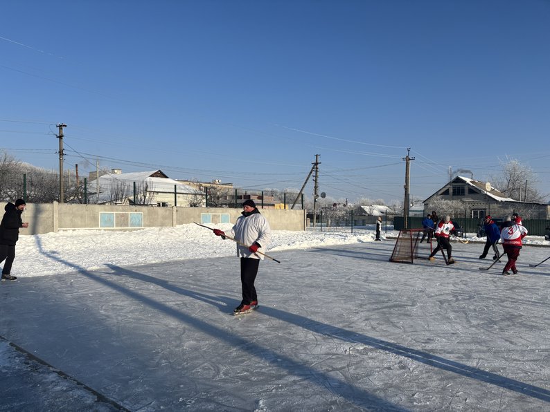 Уперше ковзанку у Сахновщині залили у 2017 році, і тоді мало хто з місцевих вмів кататися на ковзанах, згадує Олексій Філоненко. Нині, каже, третина гравців — це хлопці, які навчилися кататися саме на цій ковзанці.