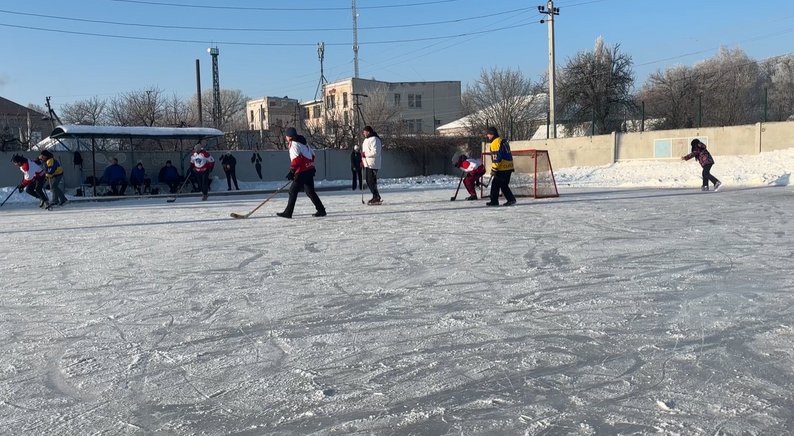 Ковзанка у Сахновщині, на якій аматорська команда грає у хокей, січень 2026 року. Суспільне Харків