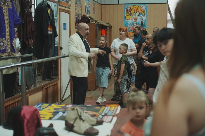 Юрій Соболєв проводить екскурсію в старому цирку, Харків, липень 2025 року. Суспільне Харків/Єлизавета Пшенична