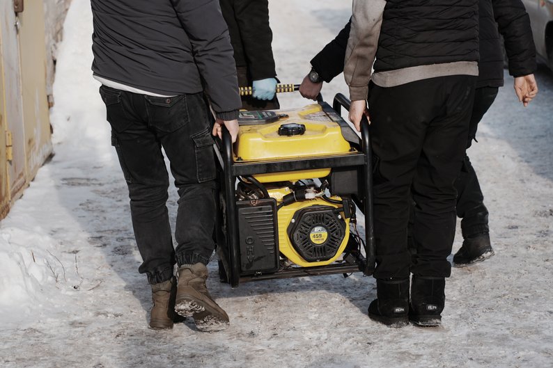 Люди несуть генератор, Харків 27 січня 2026 року. Суспільне Харків/Вікторія Якименко