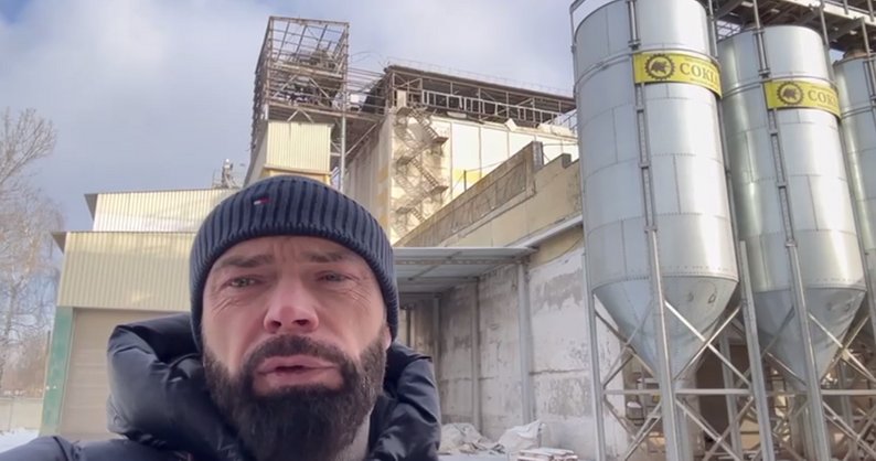 Микола Бакшеєв біля пошкодженого російським дроном елеватора, 31 грудня 2025 року. Микола Бакшеєв