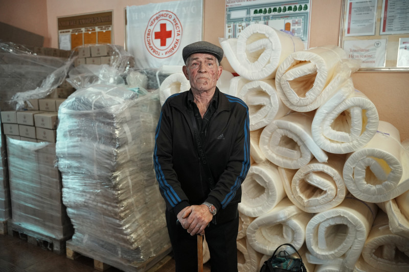 Віктор Соболєв, евакуйований із Купʼянська, 13 квітня 2026 року. Суспільне Харків/Вікторія ЯкименкоЇжа — картошина своя була. Огірок був, вода була у колодязі — я пішов поремонтував, як тільки переїхав туди. Там люди приходили і почали брати воду. Потім дощі пішли, вона пішла руда. Тоді ходив кілометри за чотири чи п’ять, аж туди, на санчатах їздив.