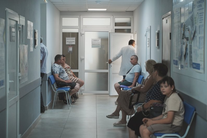 Пацієнти чекають на прийом у Близнюківській лікарні, липень 2025 року. Суспільне Харків/Вікторія Якименко