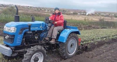 Юлія Романова працює на міні-тракторі на своїй фермі в Ізюмському районі. Скріншот відео Юлії Романової