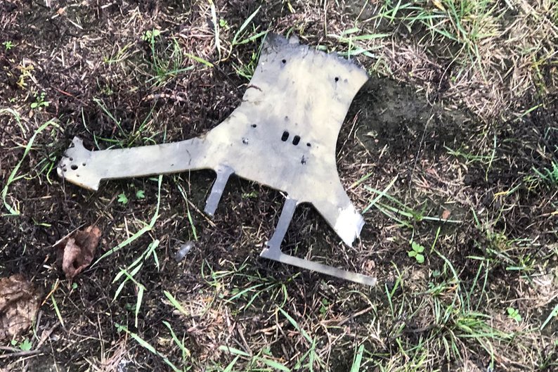 Уламок від дрона, яким росіяни атакували вежу мобільного зв’язку у Борівській громаді 10 грудня 2025 року. Олександр Тертишний