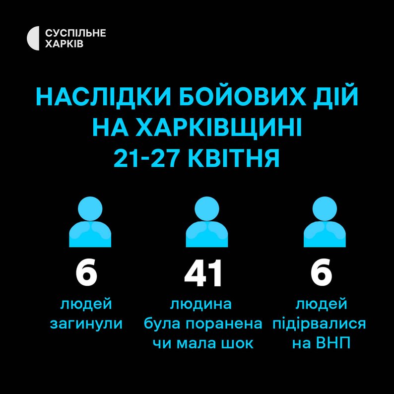 На Харківщині через російські обстріли за тиждень 21-27 квітня загинули шестеро людей, понад 40 були поранені. Суспільне Харків