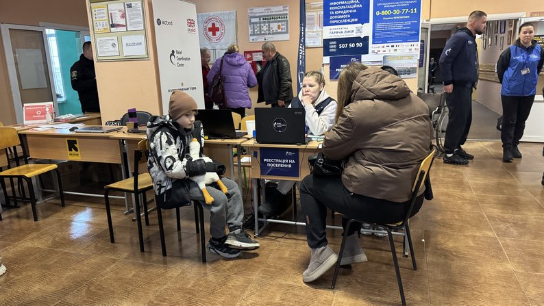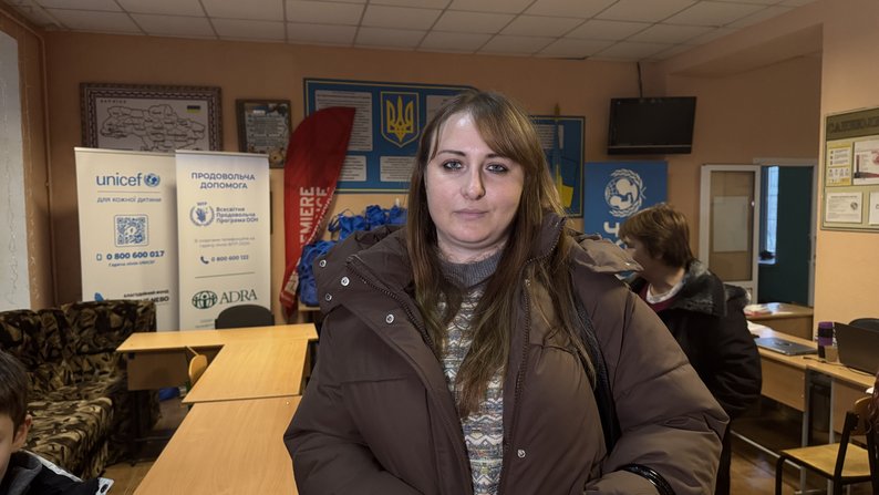 Марина Кисіль з сином у “Координаційному гуманітарному центрі”, 10 грудня 2025 року. Суспільне Харків/Лариса Говина