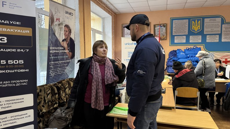 Світлана Харченко та Дмитро Щербина спілкуються в “Координаційному гуманітарному центрі”, 10 грудня 2025 року. Суспільне Харків/Лариса ГовинаМи розуміємо, що нервова система у людей має накопичувальний ефект. І, звісно, що постійні обстріли різного типу БпЛА, КАБами тощо — вони дуже суттєво впливають на те, що люди вже не тримаються за свої нажиті пожитки, за свою будівлю, за свої корені родові, й самостійно приймають рішення евакуюватися своєчасно.