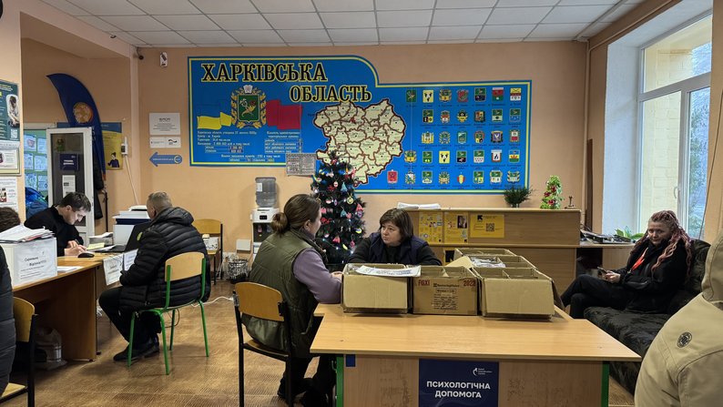 Волонтери привезли родину з Великого Бурлука до “Координаційного гуманітарного центру”, 10 грудня 2025 року. Суспільне Харків/Лариса Говина
