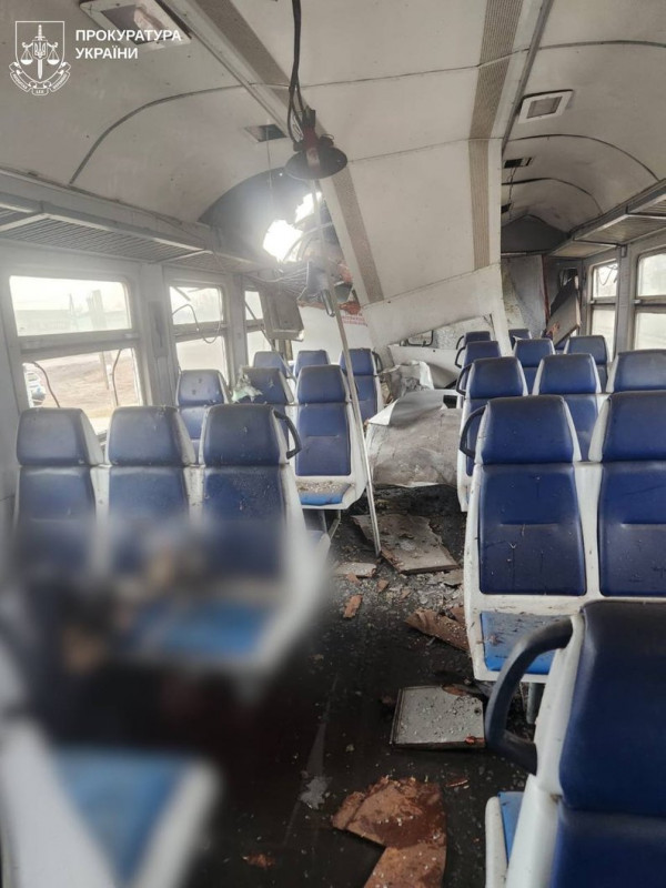 Наслідки прямого влучання в електропотяг сполученням Слатине — Харків, 24 березня 2026 року. Харківська обласна прокуратура