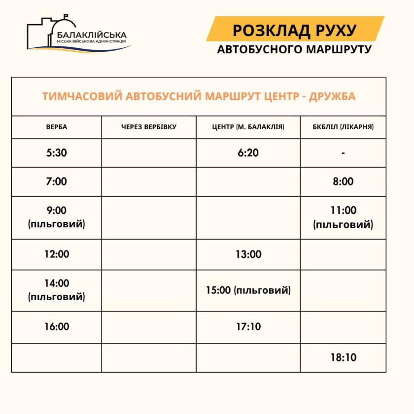 Крім того, на весь час ремонтних робіт на ділянці дороги Р-78 (Харків — Зміїв — Балаклія — Гороховатка), автобусний маршрут Центр — Дружба буде змінений. Він курсуватиме через село Вербівка починаючи з 09:00 (до 09:00 автобус буде курсувати за постійним графіком).
