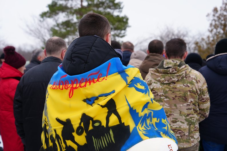 М’які іграшки в руках у одного з присутніх на похованні Григорія Шикули та його трьох дітей, Сковородинівка, Харківська область, 13 лютого 2026 року. Суспільне Харків/Олександр Манченко