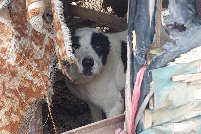 У Мереф'янській громаді на Харківщині шестирічна середньоазійська вівчарка Багіра чотири роки просиділа на ланцюгу в зачиненому сараї. Її господар у 2022 році виїхав до Росії та покинув тварину. Собаку забрали до притулку.