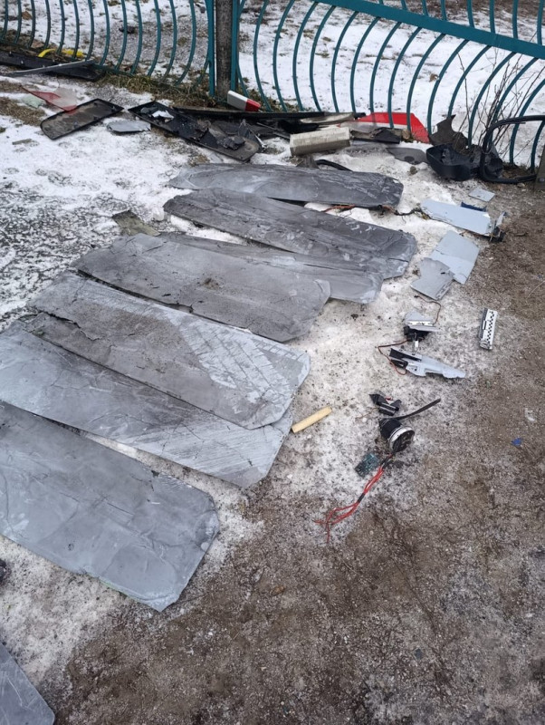 Уламки бзпілотника після влучання у селі Бахтині Борівської громади Ізюмського району, 5 лютого 2026 року. Степан Масельський
