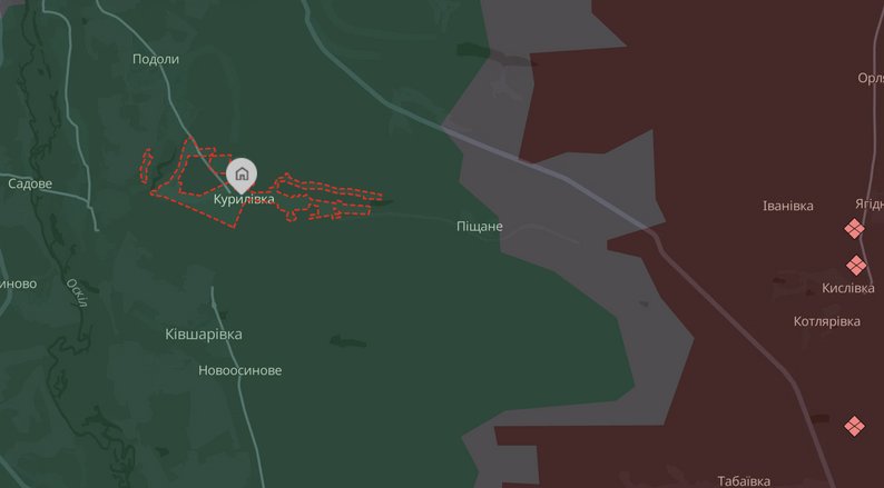 Курилівка на мапі, 13 січня 2026 року. Deepstate
