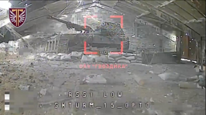 Після виявлення "Гвоздики" оператор ударного FPV-дрона філігранно пробрався крізь невелику діру в даху будівлі та уразив ціль.