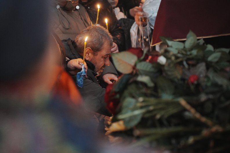 Батько Карини Бахур на прощанні зі спортсменкою в Берестині, 19 листопада 2025 року. Суспільне Харків/Вікторія Якименко