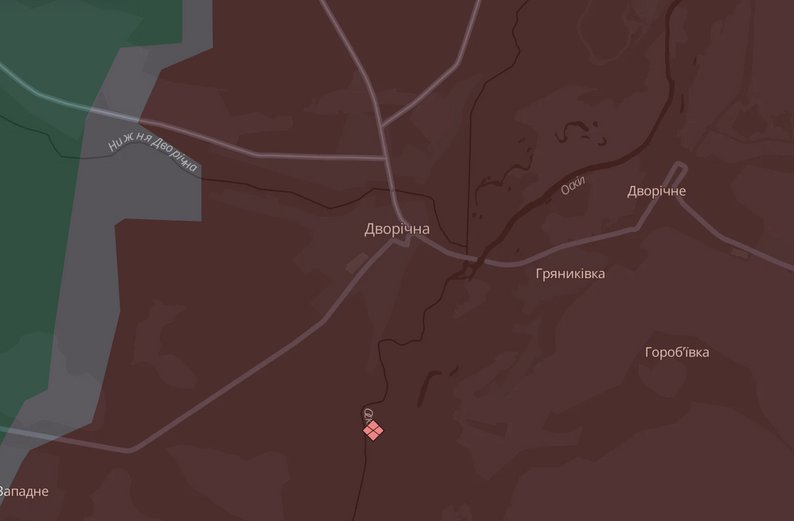Дворічна на мапі, 6 листопада 2025. DeepstateМожу сказати, що адміністративних будівель у Дворічній не залишилося цілих. В усіх селах немає адмінбудівель, шкіл, клубів. Все це зруйновано. На 90% зруйнований житловий фонд в самій Дворічній, ну і десь 20-25% по селах теж житловий фонд зруйнований.