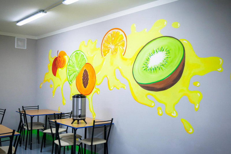 Їдальня в новій підземній школі, Чугуїв, квітень 2026 року. Харківська ОВА