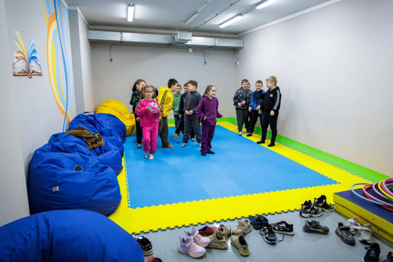 Діти на уроці фізкультури в новій підземній школі, Чугуїв, квітень 2026 року. Харківська ОВА