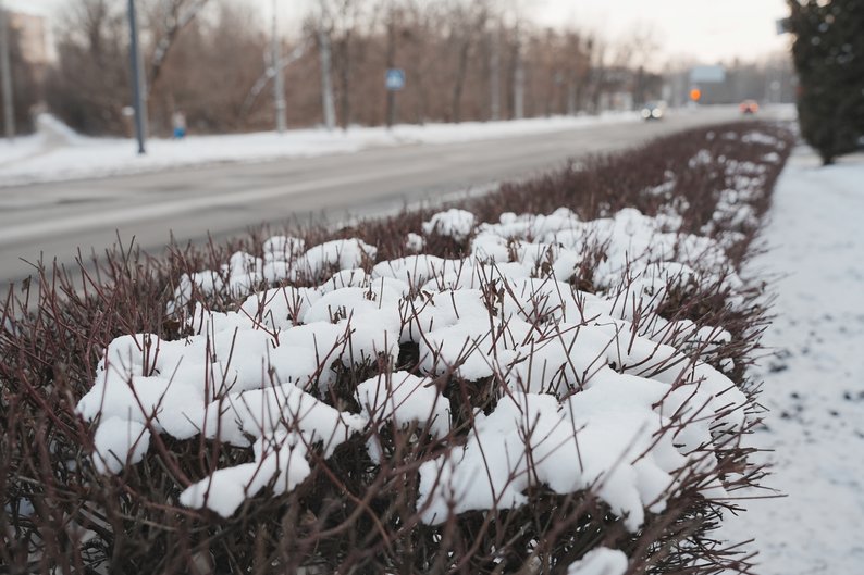 Сніг на кущах на Харківщині, 21 лютого 2025 року. Суспільне Харків/Вікторія Якименко