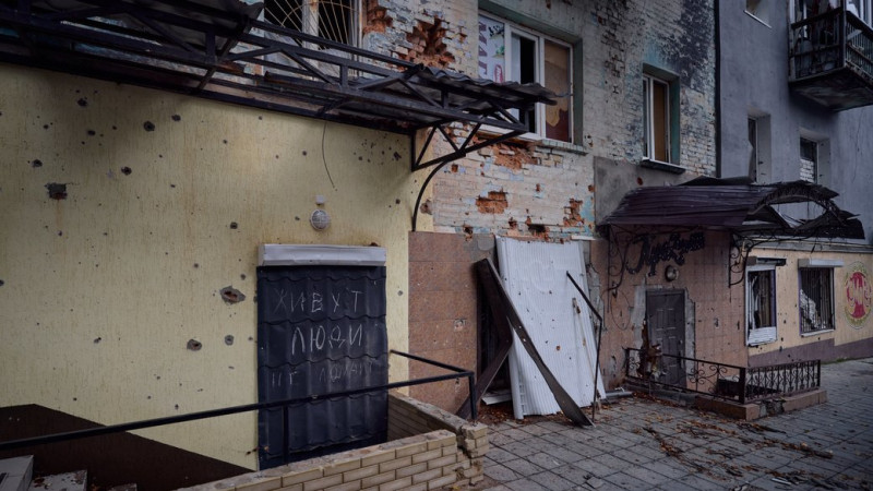 В центрі Ізюма є значні руйнації, у приміщенні виконкому повилітали вікна, сказав Суспільному заступник голови Ізюма Володимир Мацокін.