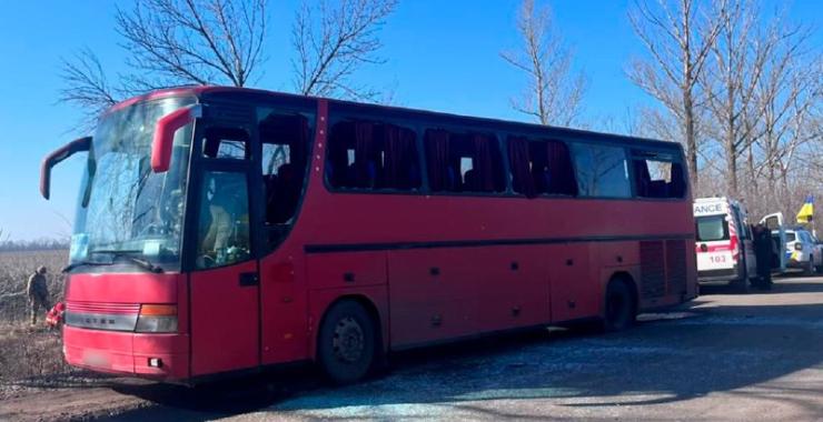 Атака на автобус у Руській Лозовій 11 лютого. Фото: Дергачівська МВА