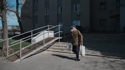 За інформацією: Суспільне Харків. Гуртожиток для ВПО у Харкові, де виявили порушення умов проживання, квітень 2026 року. Суспільне Харків/Вікторія Якименко Пандус у гуртожитку для ВПО у Харкові, де виявили порушення