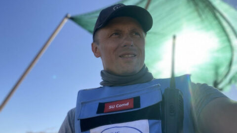 За інформацією: Суспільне Харків. Команда "Співаківських добровольців" з Ізюмщини (перша зліва — Надія Степанян). Надала Суспільному Надія Степанян Сотні квадратних метрів маскувальних сіток, окопні свічки, грілки та іншу допомогу передали
