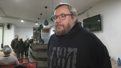 За інформацією: Суспільне Харків. Автор фільму "Герої не вмирають" Володимир Чистілін. Суспільне Харків/Давид Надворний Жителі Харкова, які прийшли на показ фільму "Герої не вмирають", 20 лютого 2026 року. Суспільне Харків/Давид