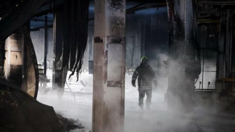 За інформацією: Суспільне Харків. Рятувальник на підприємстві у Малинівці, яке атакували російські безпілотники 19 лютого. ДСНС Харківщини У Малинівці Чугуївського району рятувальники виявили тіла ще двох людей під завалами складської