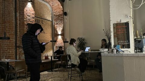 За інформацією: Суспільне Харків. Харків'яни в одному з міських закладів під час блекауту. Суспільне Харків/Валерія Ємець У п'ятницю, 20 лютого, у Харківській області діють графіки погодинних відключень світла. Їх запровадили
