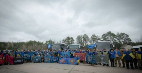 За інформацією: Суспільне Харків. Звільнені з російського полону, зокрема український журналіст Дмитро Хилюк, після обміну полоненими 24 серпня 2025 року. Суспільне Чернігів/Максим Кішка 2 жовтня 2025 року пройшов 69 обмін