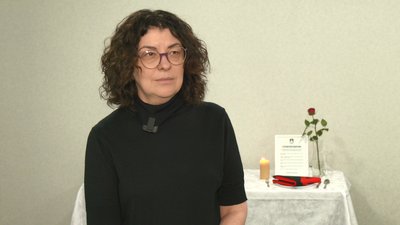 За інформацією: Суспільне Харків. Колега загиблого Олега Журавльова Віктор, 18 березня 2026 року. Суспільне Харків/Нікіта ГалкаЧорна стрічка на автівці екстреної медичної допомоги у день поховання медичного техніка Олега Журавльова, 18