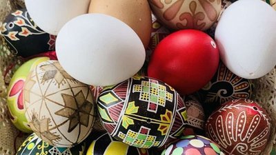 За інформацією: Суспільне Харків. Писанки у кошику. Фото надала Ольга Тимошенко На Харківщині розписані до Великодня писанки використовують як обереги, що можуть зберігатися роками, а орнамент "40 клинців" вважають прадавнім