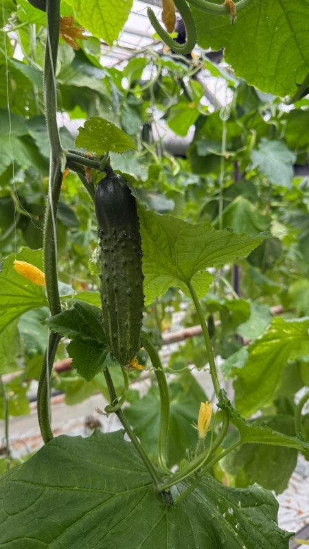 "Це огірок, який запилюють бджоли. Вони живуть у самих теплицях, і ми не можемо використовувати хімію, тому що бджоли загинуть. Це такий показник екологічності — у нас практично єдиний комбінат в Україні, який вирощує такі огірки", — каже Ігор Сисенко.