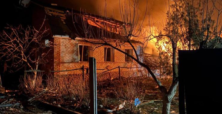 “Селище Печеніги Чугуївського району: спалахнули житлові будинки та господарчі споруди. Жінка отримала гостру стресову реакцію. Село Полкова Микитівка Богодухівського району: БпЛА влучили у продовольчий магазин, виникла пожежа”, — повідомили у Харківській обласній прокуратурі.