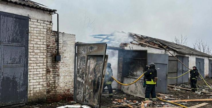 “Внаслідок влучання БпЛА сталися руйнування та загоряння двох гаражних боксів на території медичної установи. Площа пожежі склала 100 кв. м. Також пошкоджено лінію електропередач”, розповіли у ДСНС Харківщини. Минулося без жертв і постраждалих.