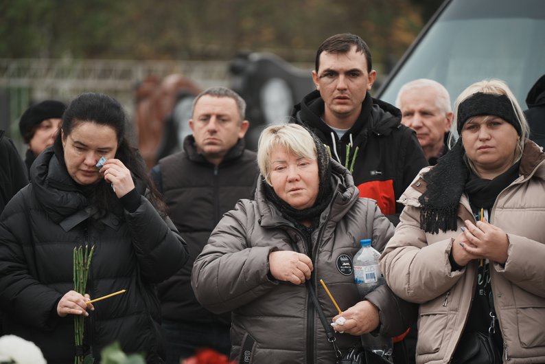 Поховання комунальника Віталія Сотніка, який загинув під час атаки РФ на Холодногірський район Харкова 22 жовтня 2025 року. Суспільне Харків/Вікторія ЯкименкоЛюдиною він був гарною, він був веселуном, він завжди шуткував. Колектив його любив, поважав, і дружно вони працювали, злагоджена була робота, і все було в колективі добре. До цього випадку. На жаль. Ніхто ж не думає, де його настигне така участь. Всі в шоці. Від цього ніхто не застрахований. У нас, на жаль, війна в країні.