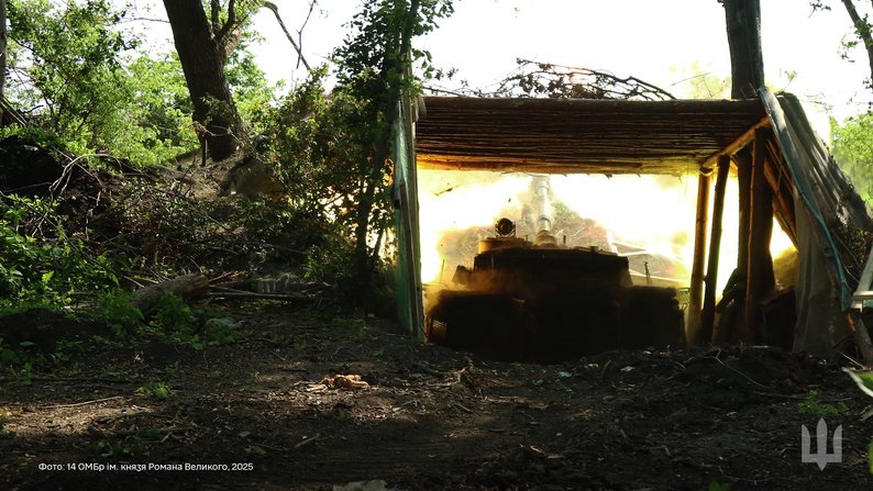 Постріл з артилерійської установки. 14 окрема механізована бригада імені князя Романа Великого