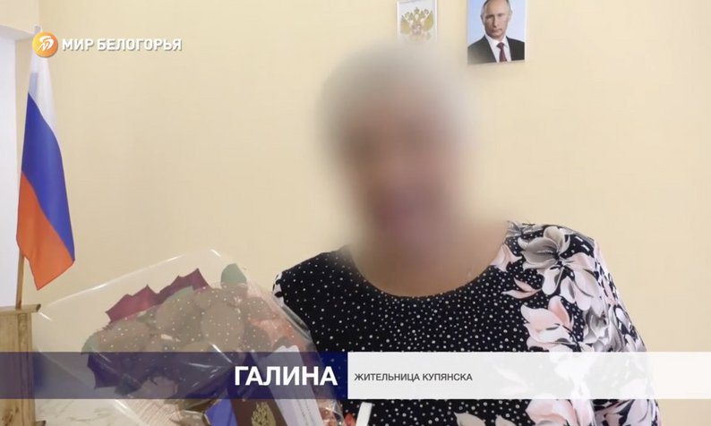 Підозрювана у виправдовуванні РФ 70-річна жителька Купʼянська. Скриншот із відео на російському YouTube-каналі “Мир Белогорья”