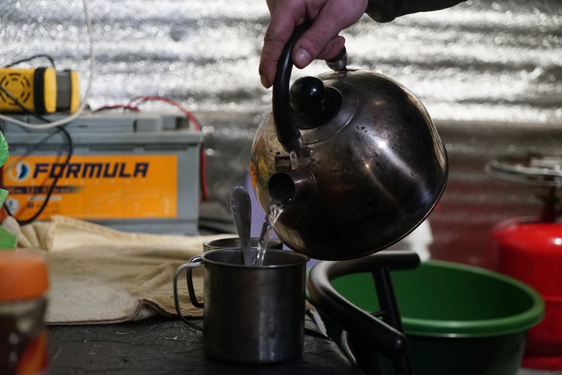Військовий готує чай. Суспільне Харків/Валерія Ємець