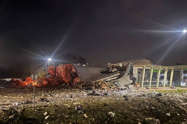 Внаслідок удару було пошкоджено автозаправну станцію та автомобілі.