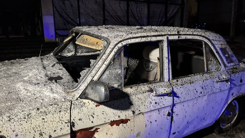 Автівка, яка зазнала пошкоджень внаслідок авіаудару по Харкову, 26 грудня 2025 року. Суспільне Харків/Лариса Говина