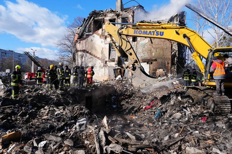Розбір завалів на місці влучання російської ракети у Київському районі Харкова, 7 березня 2026 року. Суспільне Харків/Олександр Манченко