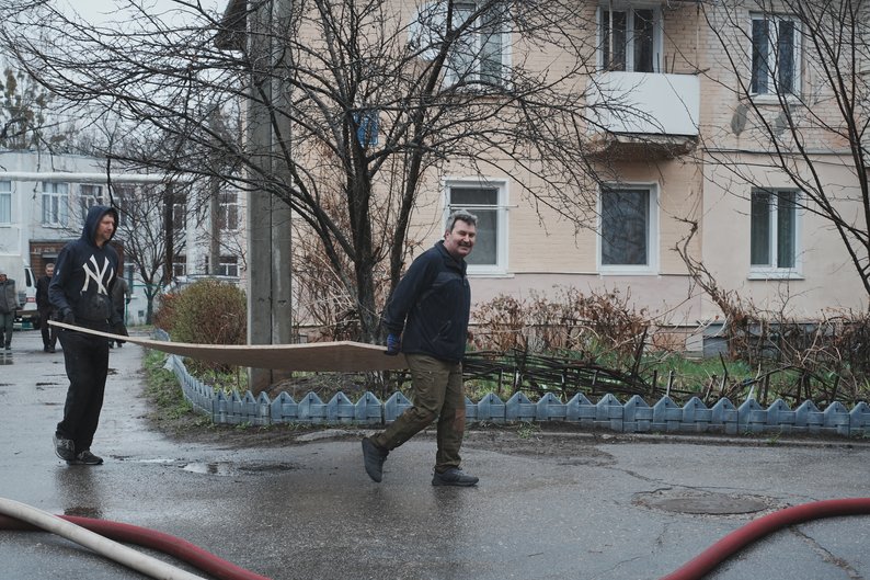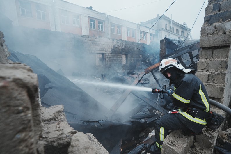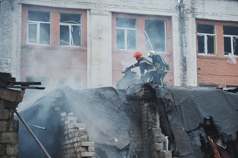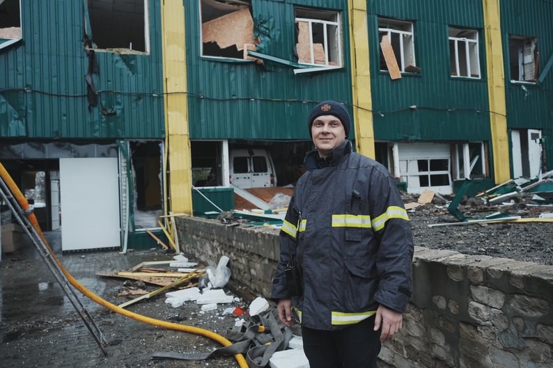 "Я приїхав о 9 годині. Тут була пожежа. Було понад 15 підрозділів автомобілів, ми поставили ще одну драбину для підтримки. Руйнації дуже великі, ця частина розбита. Колеги зараз дах проливають, перевіряють, щоб нічого не впало. Думаю, години до 5 вечора ще роботи. Когось відпустять, хтось залишиться. Мокро", — розповів Суспільному рятувальник Віталій.