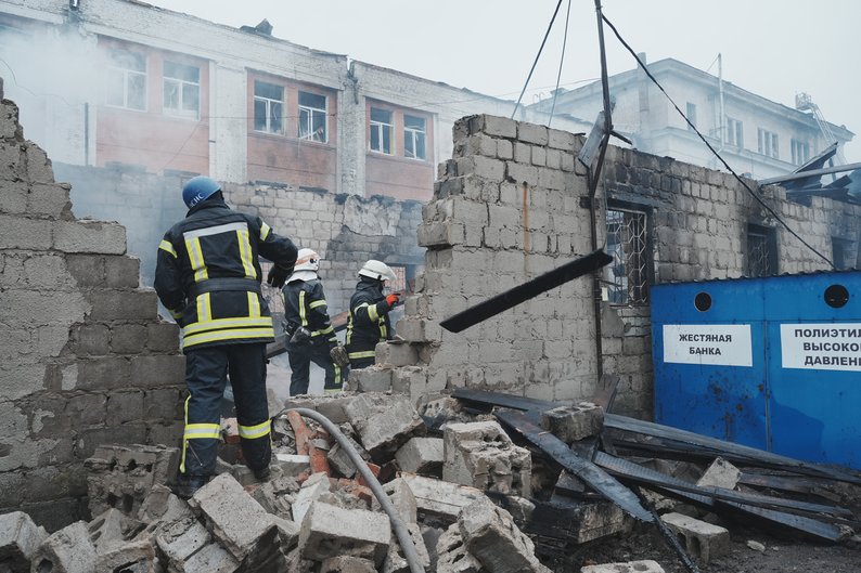 Підприємство у Харкові атакували “Герань-2”, рятувальники усувають наслідки атаки, 31 березня 2025 року. Суспільне Харків/Вікторія Якименко